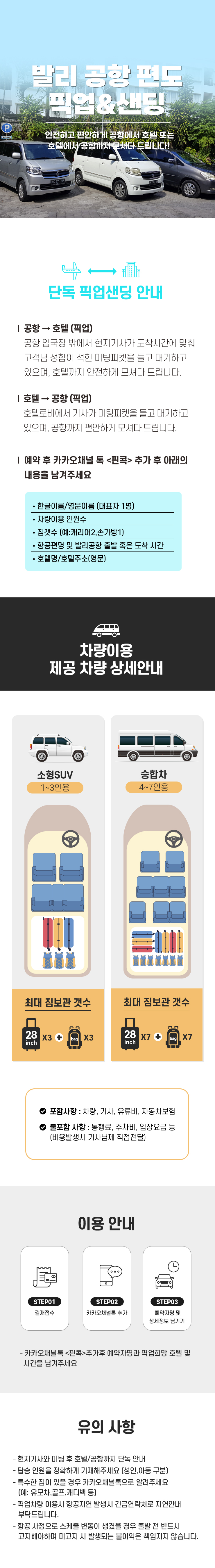 - 권장탑승인원 : 1~3인 (기사제외) // 캐리어는 1인 1개기준
